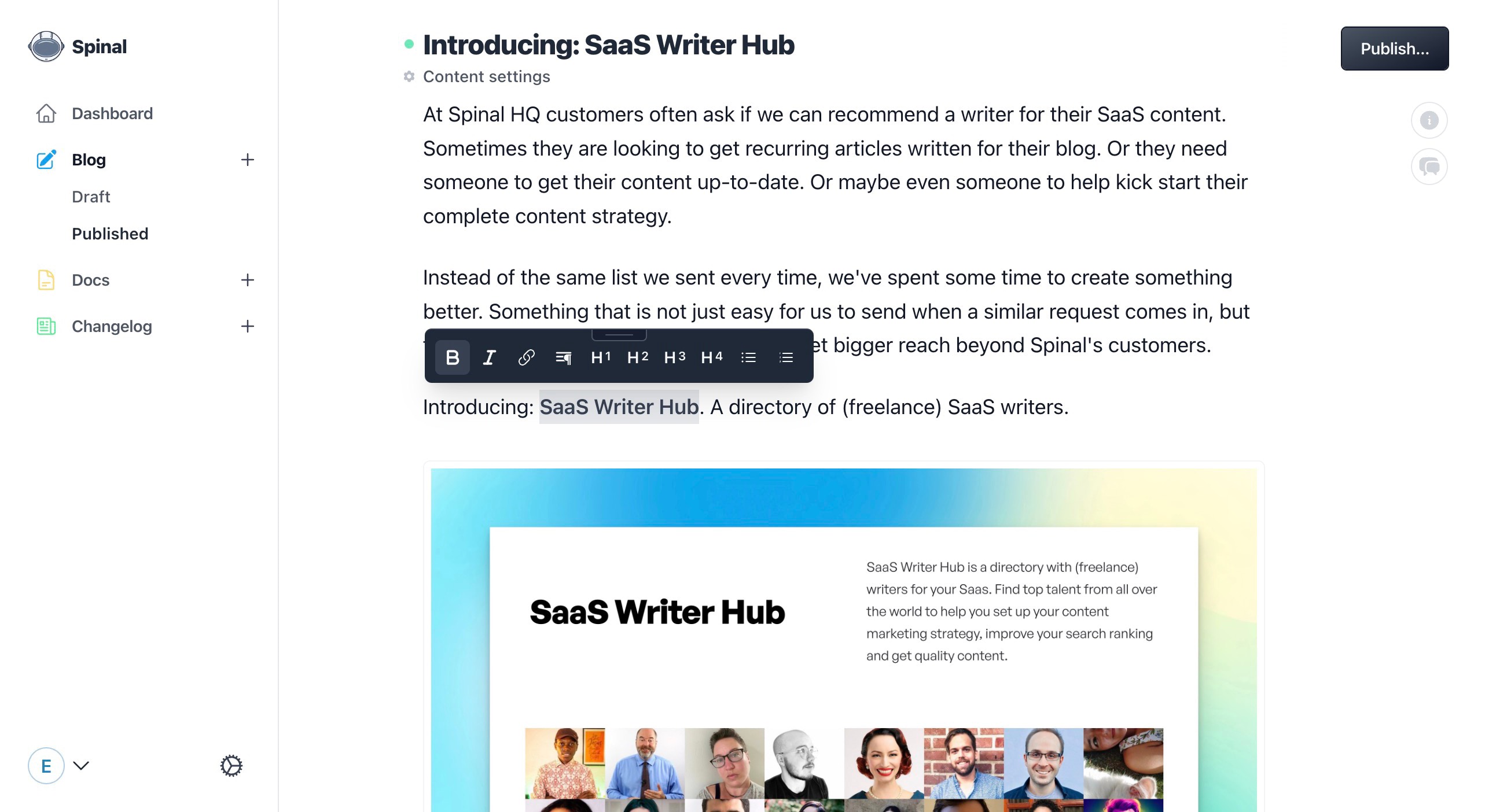The heart of Spinal. Where the magic happens. A clean editor to focus on your content. See how there's nothing in your way.