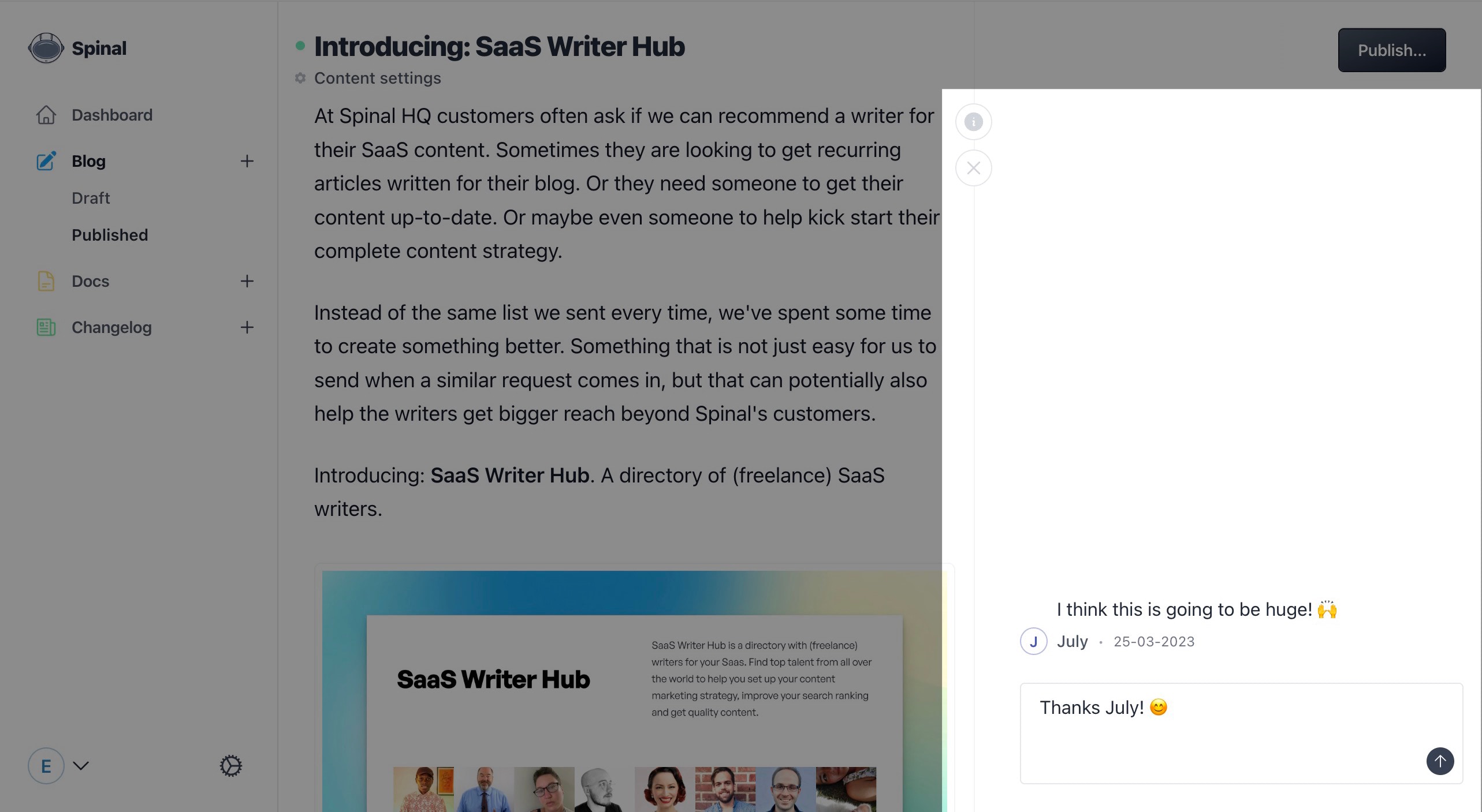 Give praise, leave feedback or highlight typo's in the comments' sidebar next to your content.